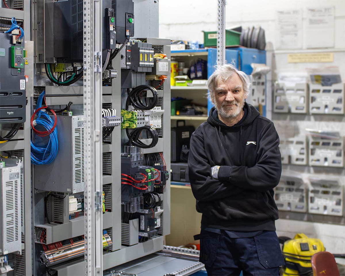 Back then, Street Crane was a very different place. Ted started out on the night shift as an electrician, paired up with Dave Moss, and quickly discovered that the company was… well… smaller. A lot smaller. No hoist works.