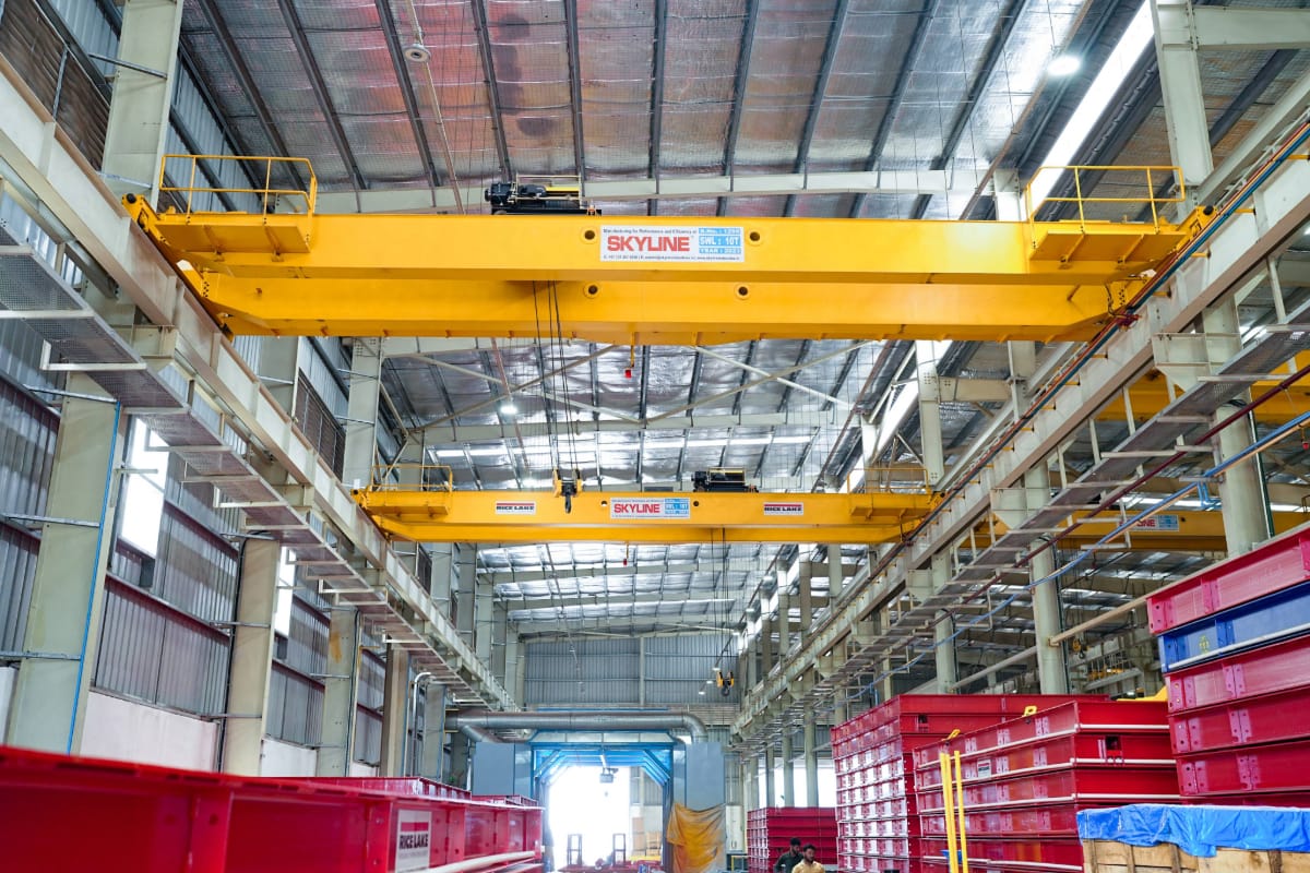 The facility layout presented additional challenges, including minimal headroom, reduced end approach and frequent loading and unloading cycles within confined spaces, making smooth operation and accurate load placement essential. To meet these requirements, Skyline Industries supplied six 5-tonne single girder EOT cranes, engineered with a 35-metre span to provide full coverage of the production hall while optimising available space. The solution delivered improved productivity, increased uptime and precise load control, supporting efficient operation while maintaining high standards of safety and reliability.